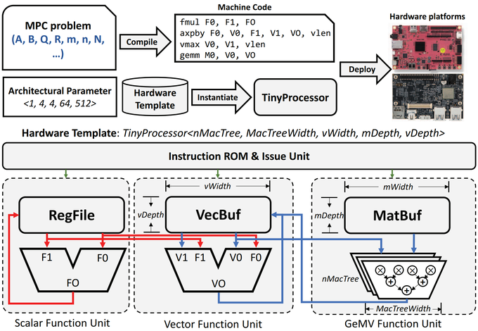 Model Predictive Control (MPC) is a state-of-the- art and robust control framework. However, its stringent per-formance requirements for computational infrastructure, and its need for real-time computation at the edge, hinder its widespread adoption in various application scenarios. This is particularly challenging for the MCUs commonly found on tiny robots. To address this computational challenge, we developed a flexible MPC solver hardware generation framework which includes a parameterized and programmable vector architecture template that accommodates instruction-level and data-level parallelism in vector and matrix functional units, and a model-specific fused architecture. Implementation of the proposed processor on the Ultra96 platform achieves up to a 9.73x speedup compared to existing generic solutions on MCUs. Moreover, end-to-end performance tests reveal that this speedup reduces the overall control error by 25.96%. Overall, the enhanced flexibility and performance of our proposed processor design open up the potential for MPC to be utilized in a broader range of applications.